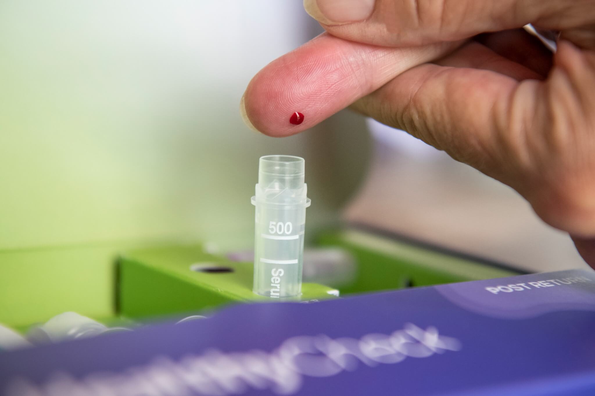 Ihr Patient entnimmt unter unserer Anleitung selbst die benötigte Blutmenge und schickt sie in einem zertifizierten und vorfrankiertem Umschlag an unser deutsches Partnerlabor.